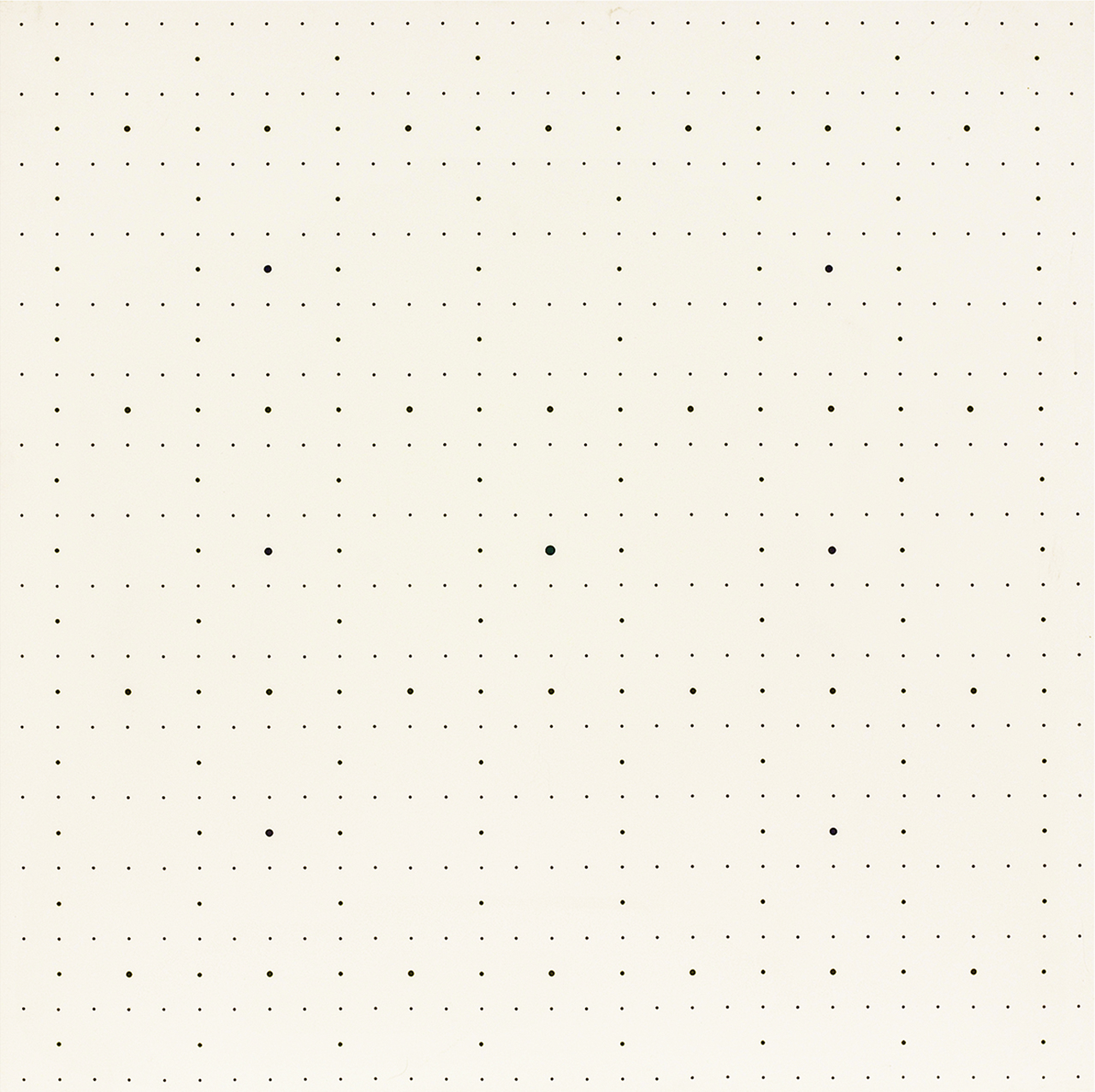 La scelta del punto come elemento poco esteso, soddisfa alla necessità di situarlo isolato nel campo. La sua forma circolare, gli conferisce una natura anonima, neutra, aperta in tutte le direzioni alla relazione con altri punti che denotano il valore strutturale spazio-distanza che li tiene in tensione.